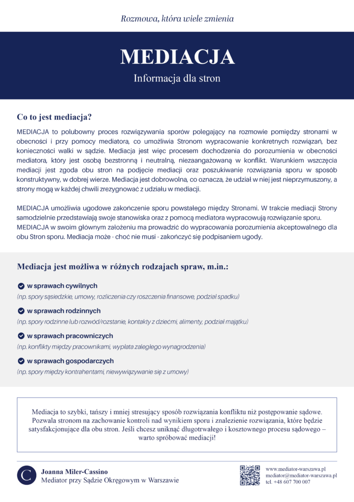 oraz Sądzie Okręgowym Warszawa-Praga zaprasza na mediację.
